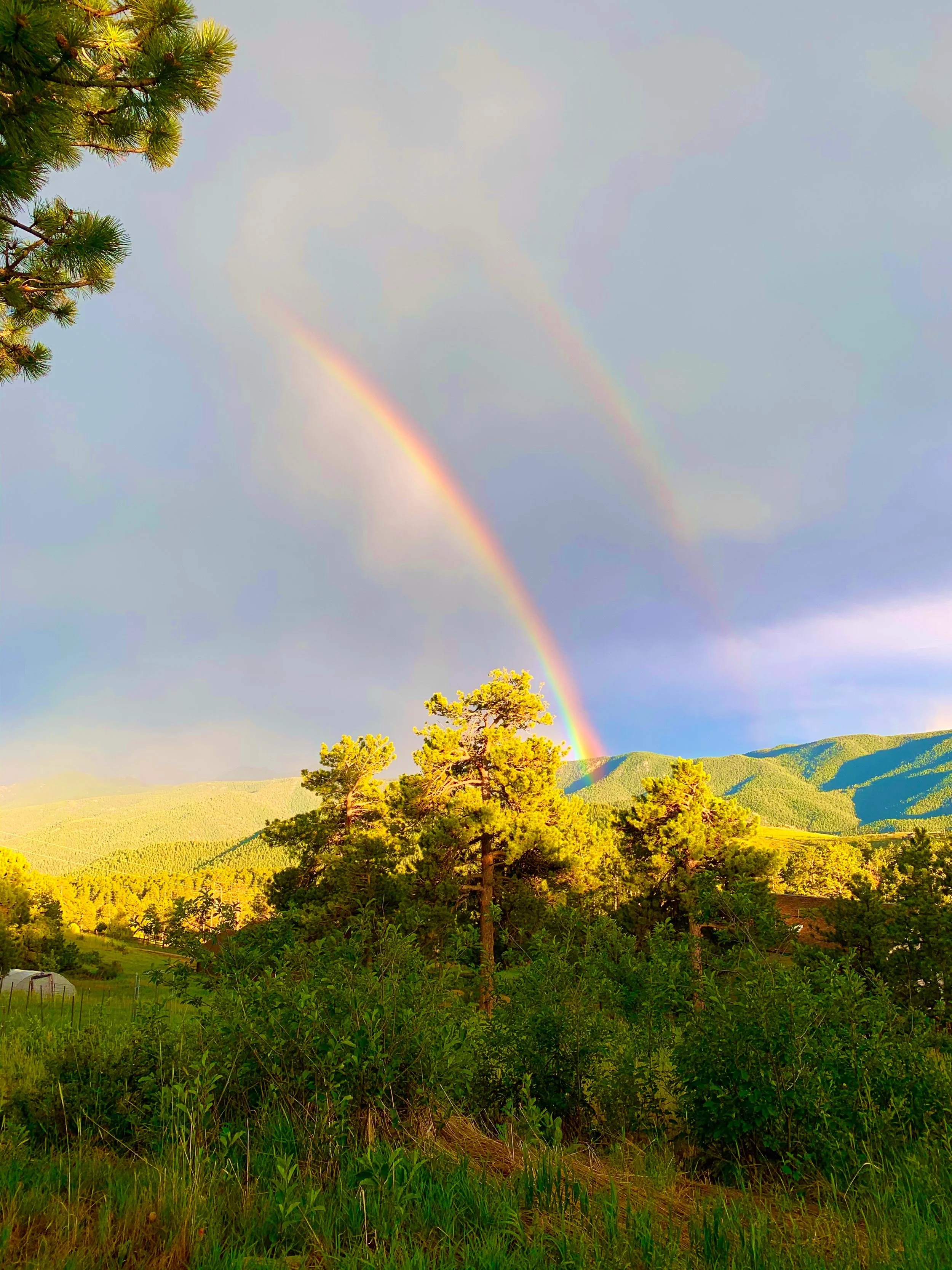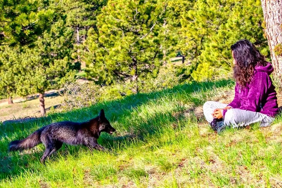 I was out there, uninterrupted for days, alone in tall, scratchy grasses, awaiting magnificent sights like the quarreling of hummingbirds and hawks hunting. With the passing of seasons, Violet and I witnessed raven and magpie battles, sat in pouring rain, and relished grand, double rainbows. Yet regardless of the moments captured, Violet’s company remained unmatched. Singing to her, trying to connect, I would giggle and delight in the perplexed cocking of her head, the pivoting of her large, black, velvety ears. Sadly, the days where we adventured side-by-side dwindled, as the emotional turbulence subsided and a joyous sense of self and peace arrived.
